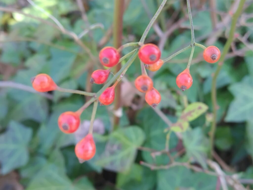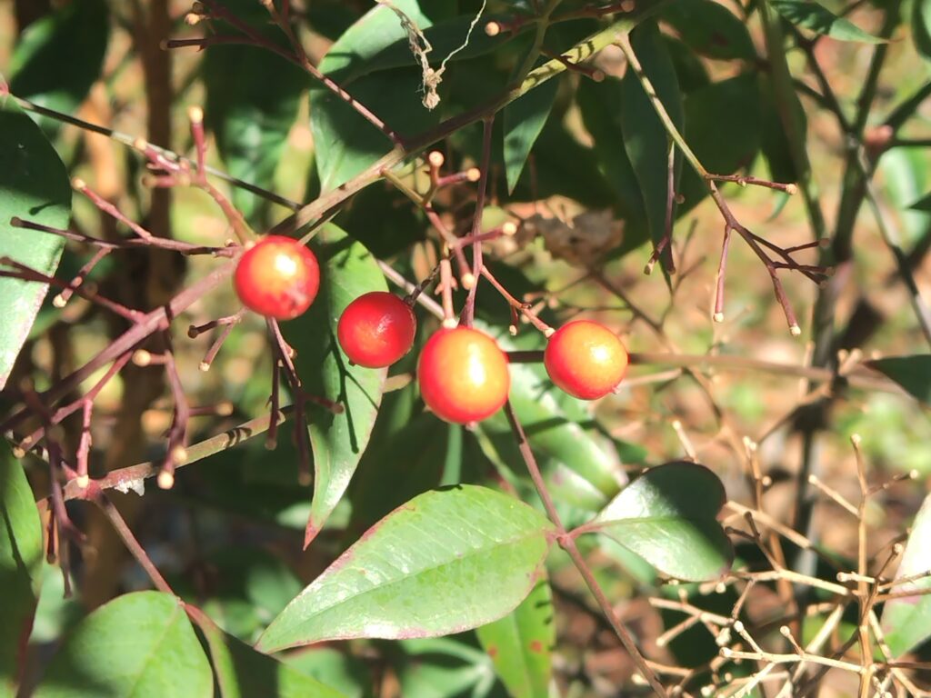 ↑南天の実。(赤くならない種類のものもあります)