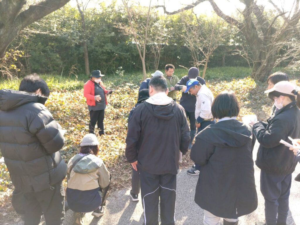 2026年2月14日㈯に味の素スタジアムみどりの広場にてオフキャンパスを開催しました。このイベントは植物同定の専門家である荒井 浩司さん(翠嶺舍植物調査事務所)をお招きし実際の植物を観察しながら植物の名前、特徴、同定のポイントなどを教えて頂きます。