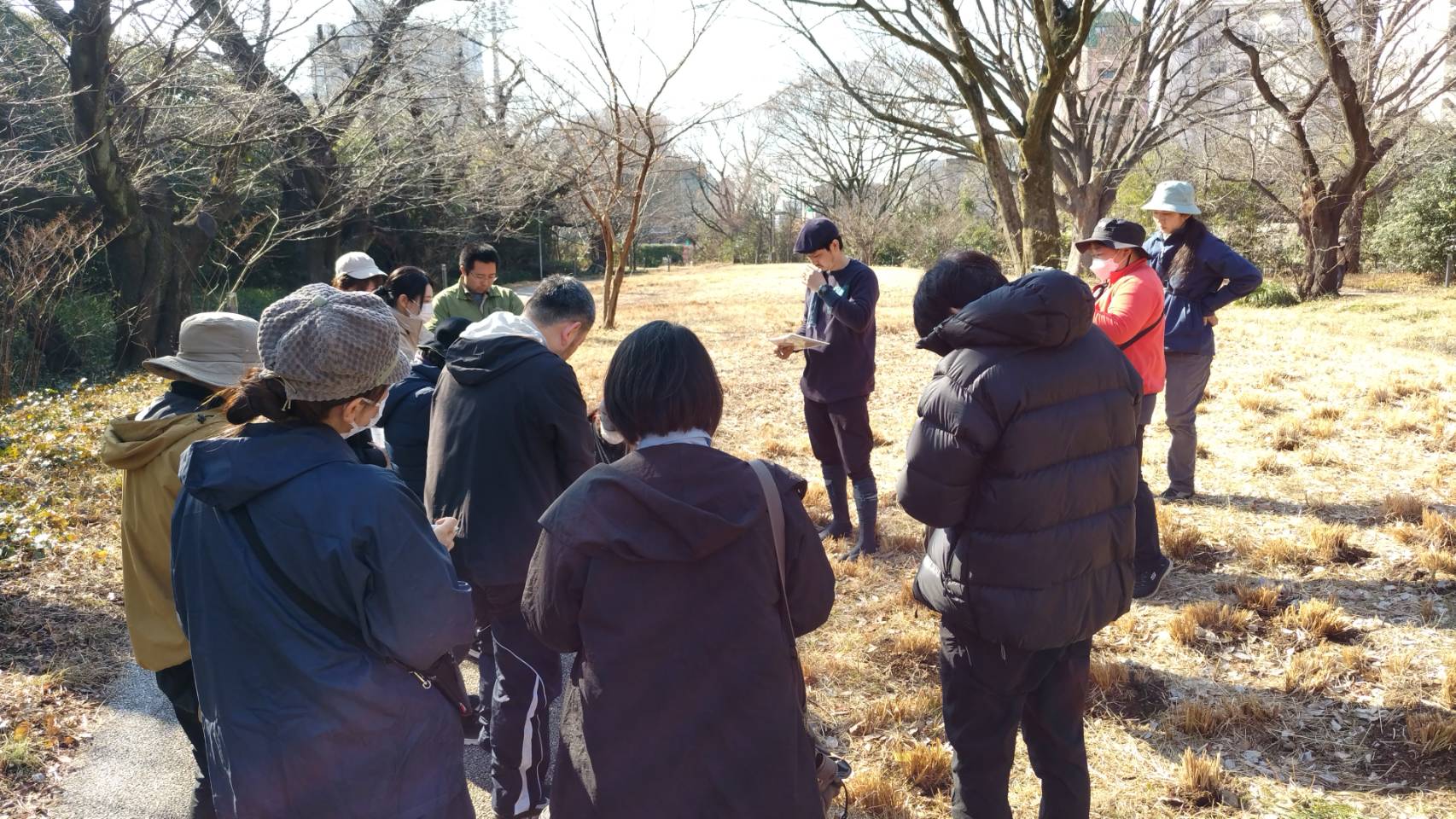 2026年2月14日㈯に味の素スタジアムみどりの広場にてオフキャンパスを開催しました。このイベントは植物同定の専門家である荒井 浩司さん(翠嶺舍植物調査事務所)をお招きし実際の植物を観察しながら植物の名前、特徴、同定のポイントなどを教えて頂きます。