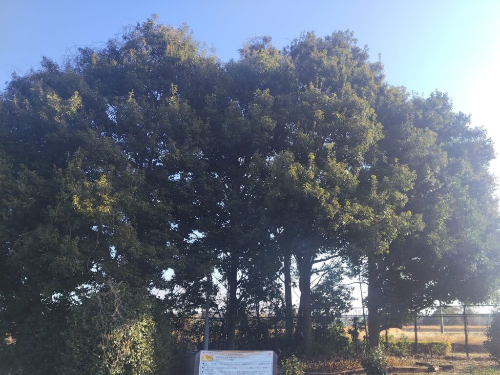 シラカシを剪定し光と風が通りやすい環境に。写真左が作業前、右が作業後の様子です。景色が抜けて見えるようになったのがお分かりいただけるかと思います。